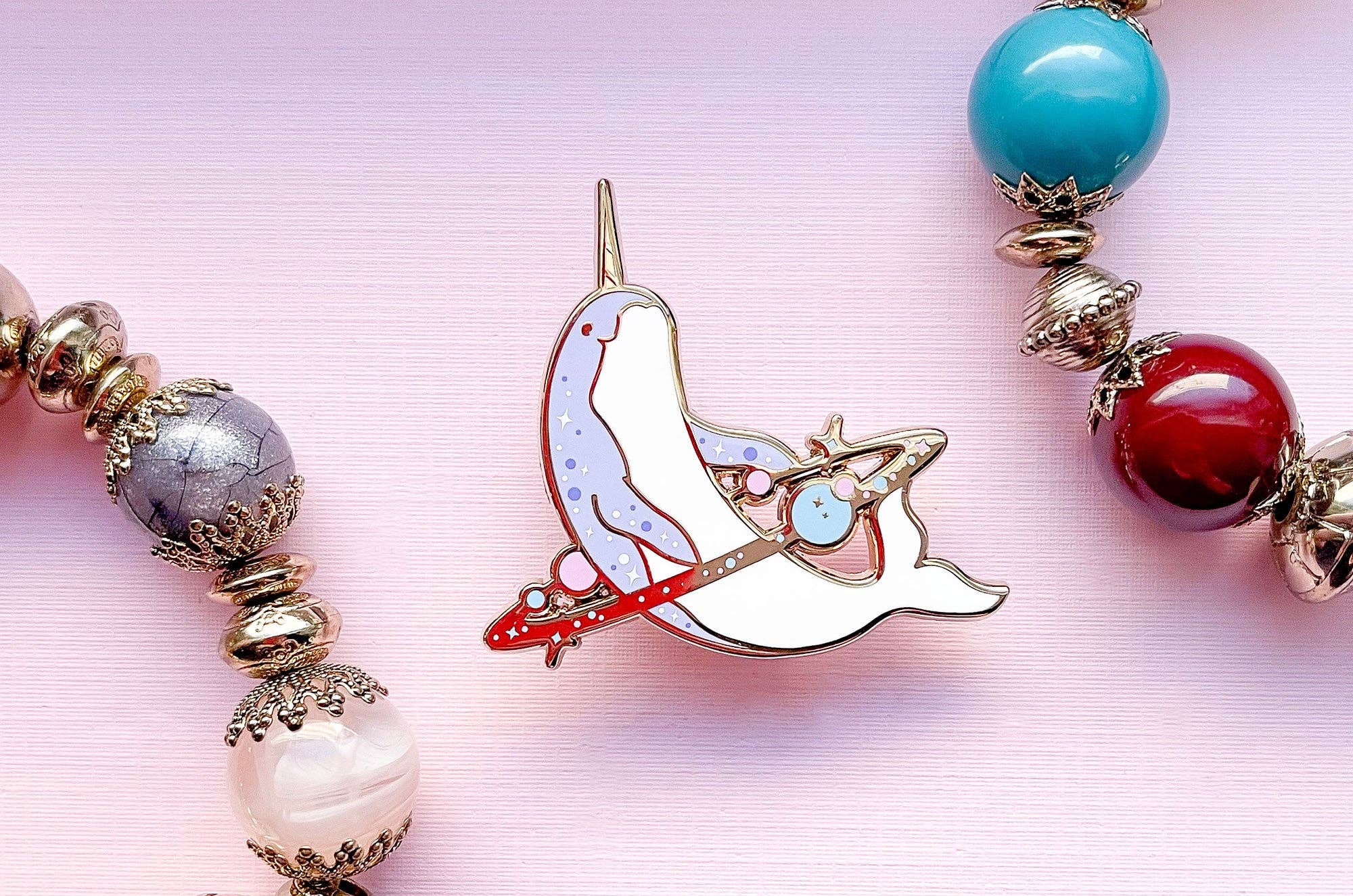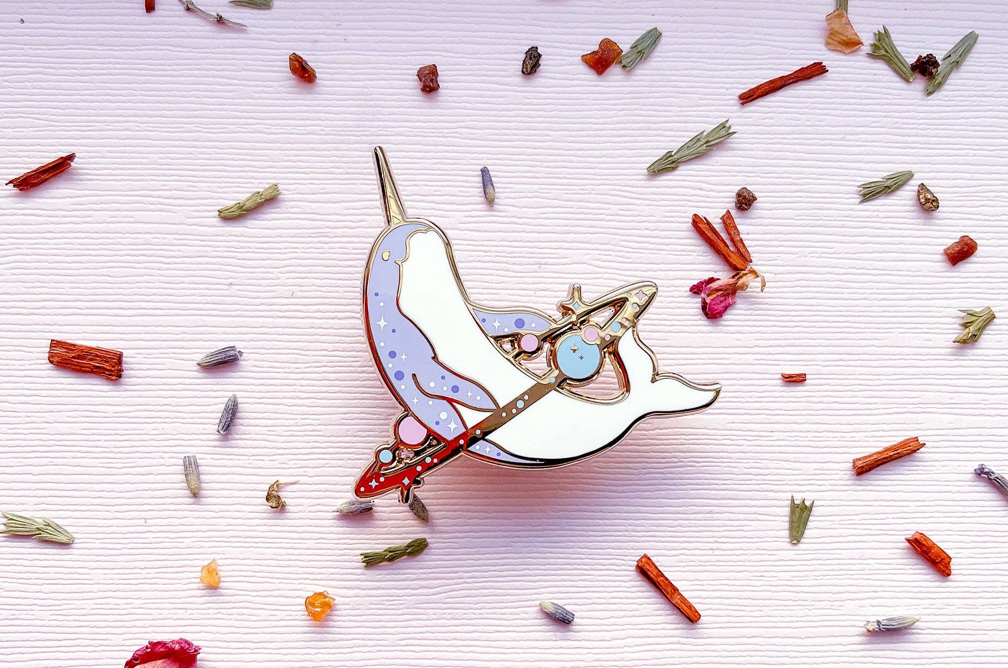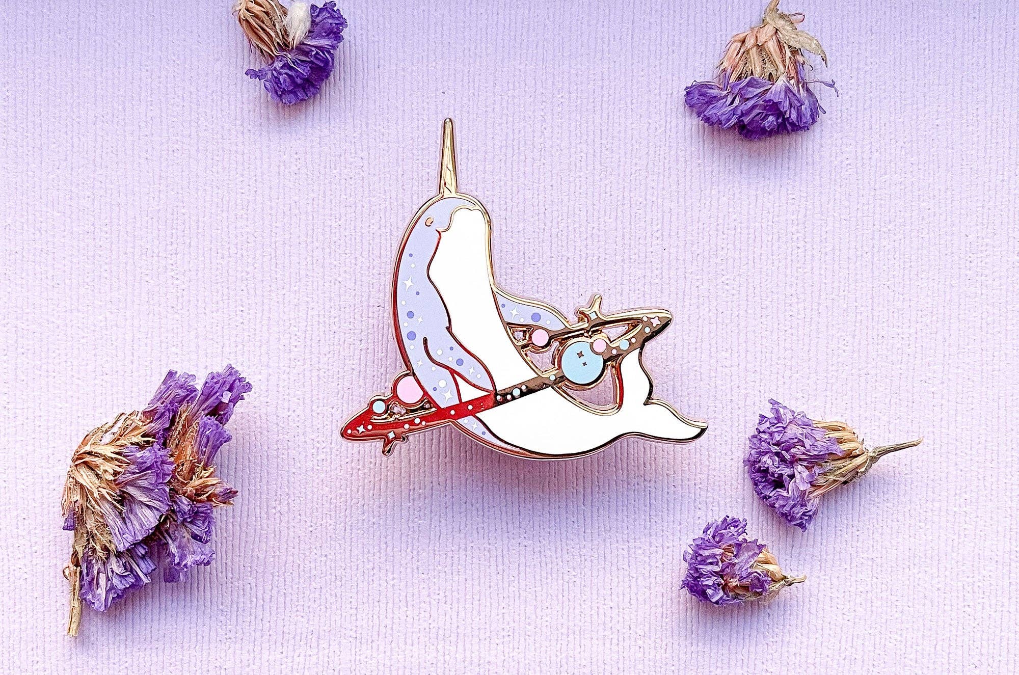 Cosmic Narwhal Enamel Pin: Locking Pin Back