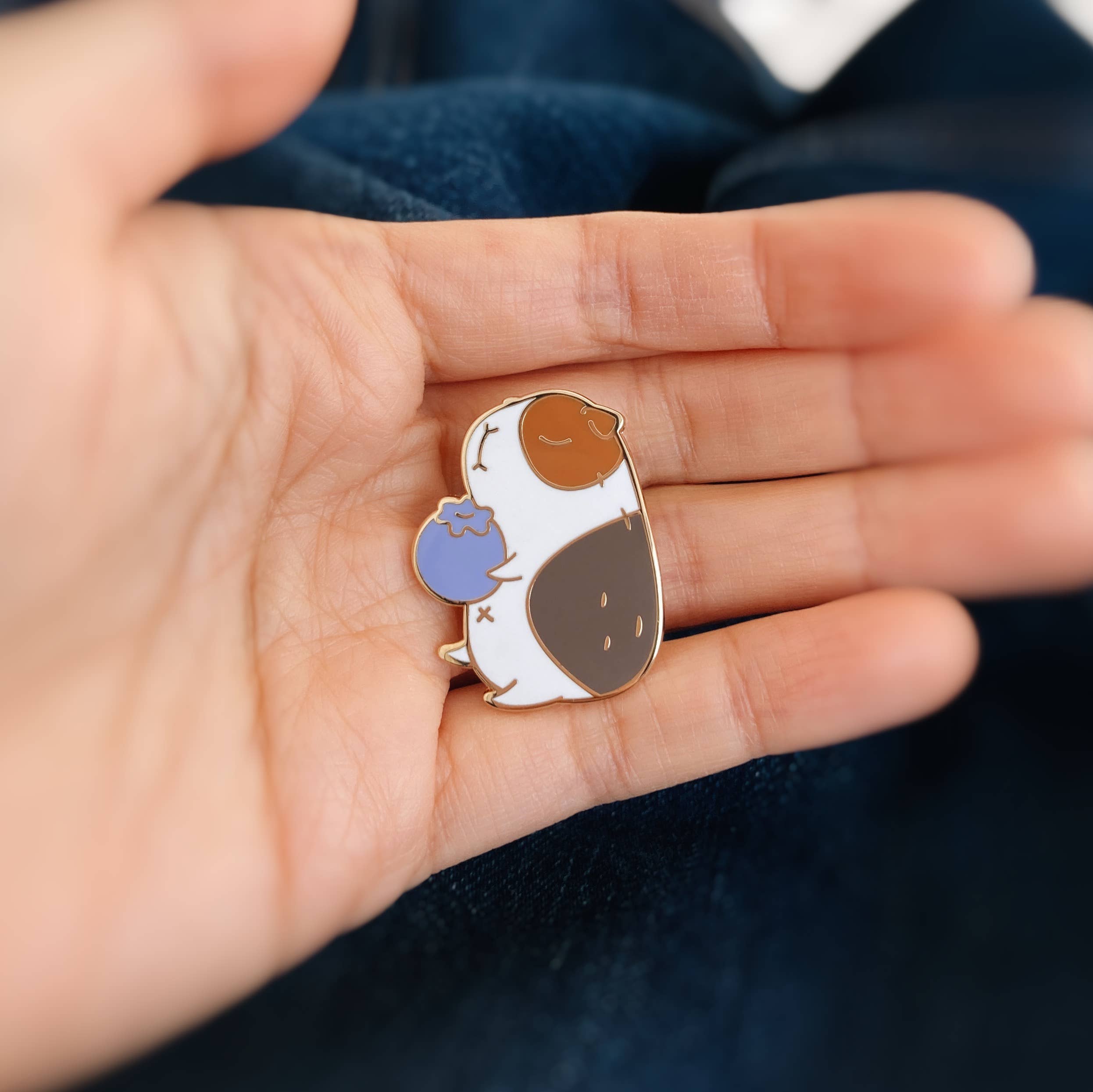 18K Gold Plated Guinea Pig and Blueberry Enamel Pin is backordered and will ship as soon as it is back in stock.