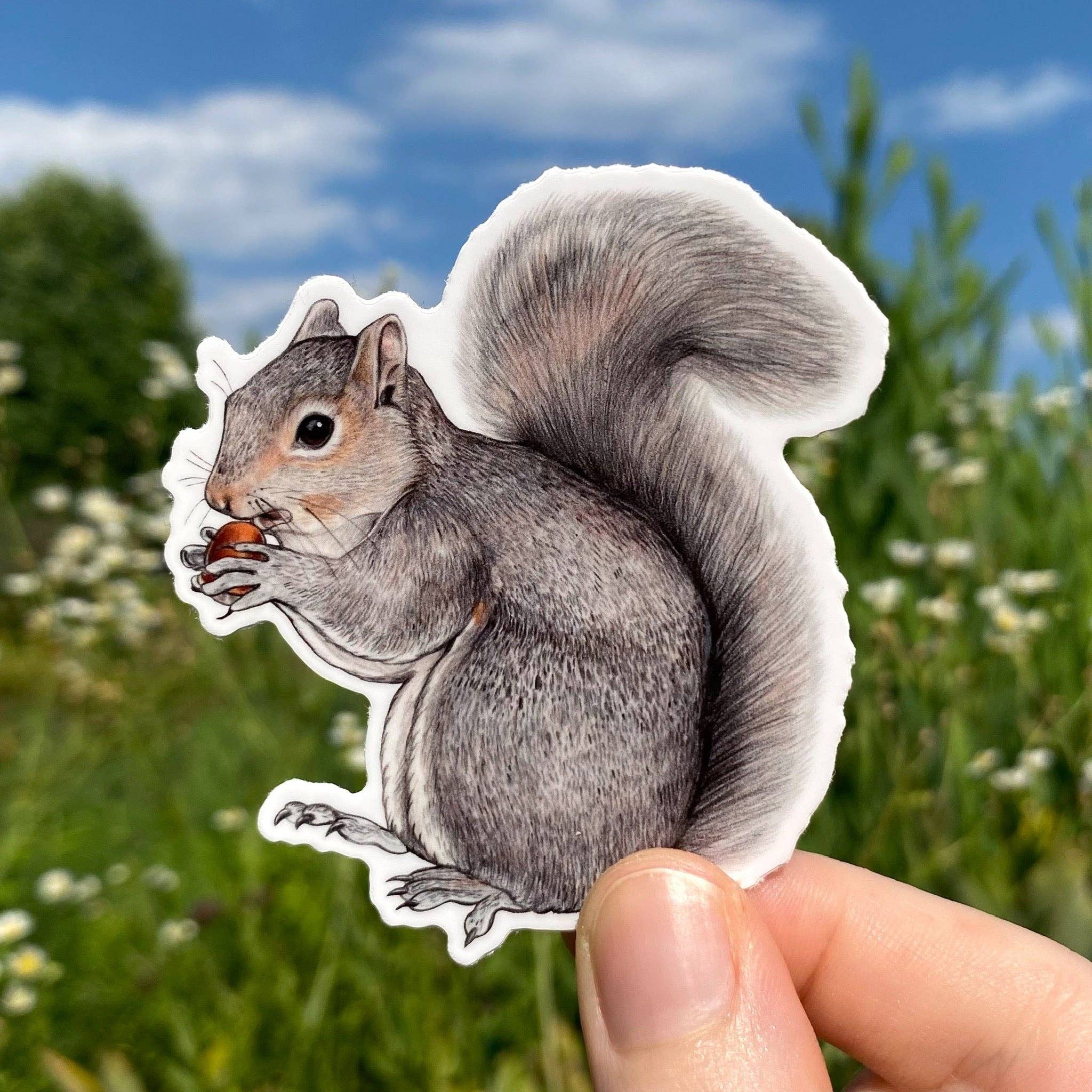 A sticker featuring my illustration of an Eastern gray squirrel.