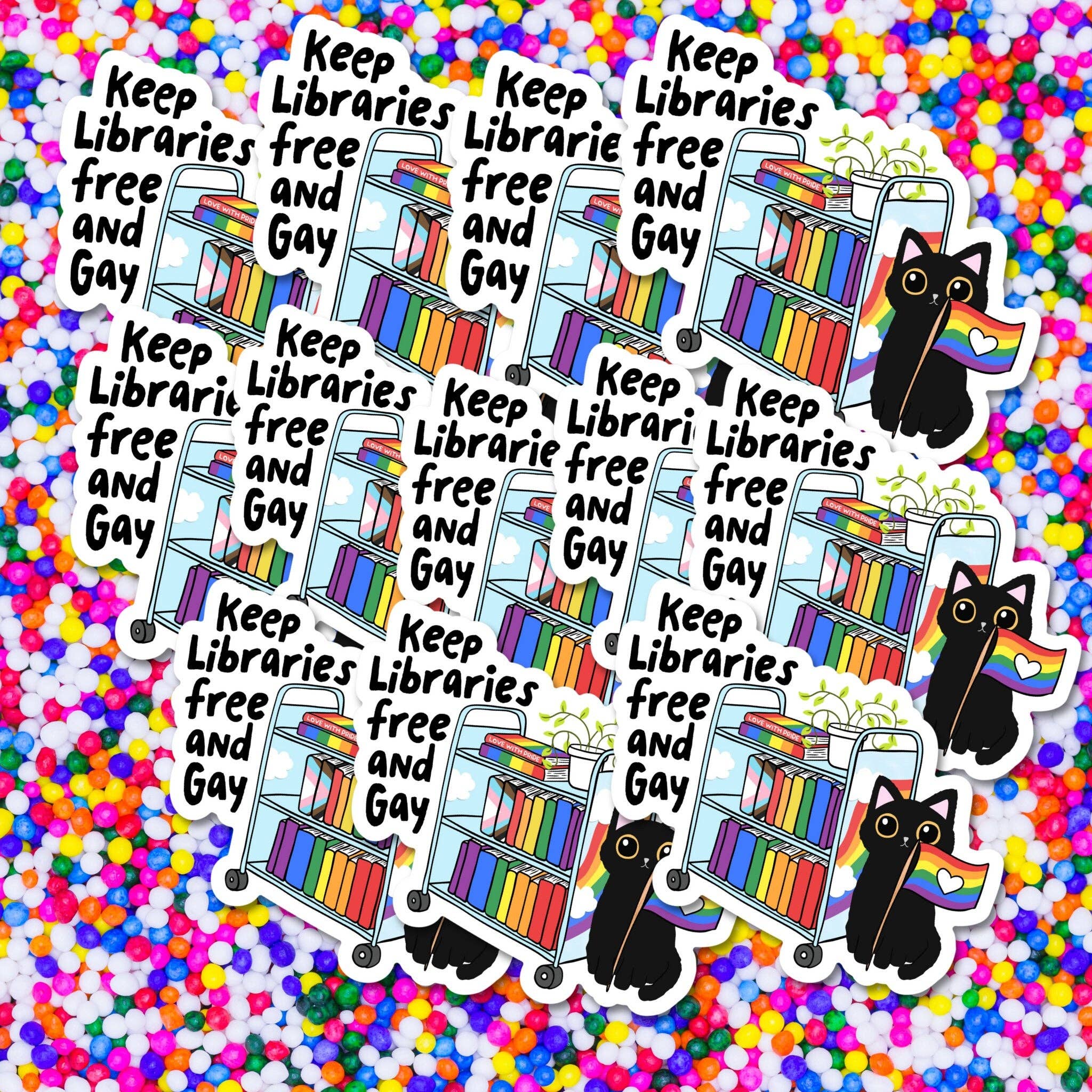 Keep Libraries Free & Gay Pride Vinyl Sticker