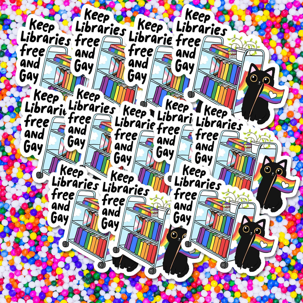 Celebrate LGBTQIA+ pride, literature, and the power of inclusive libraries with our empowering "Keep Libraries Free and Gay" Vinyl Sticker a bold and meaningful accessory that champions diversity and equal access to knowledge for all! This 3-inch vinyl sticker features a striking design with the impactful phrase "Keep Libraries Free and Gay," creating a powerful statement of unity, acceptance, and the importance of safe spaces for the LGBTQIA+ community.