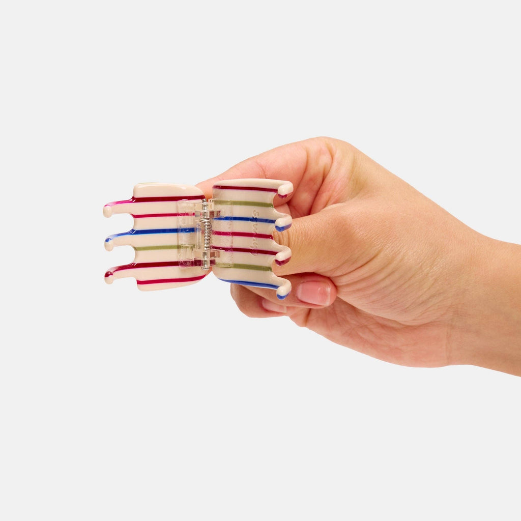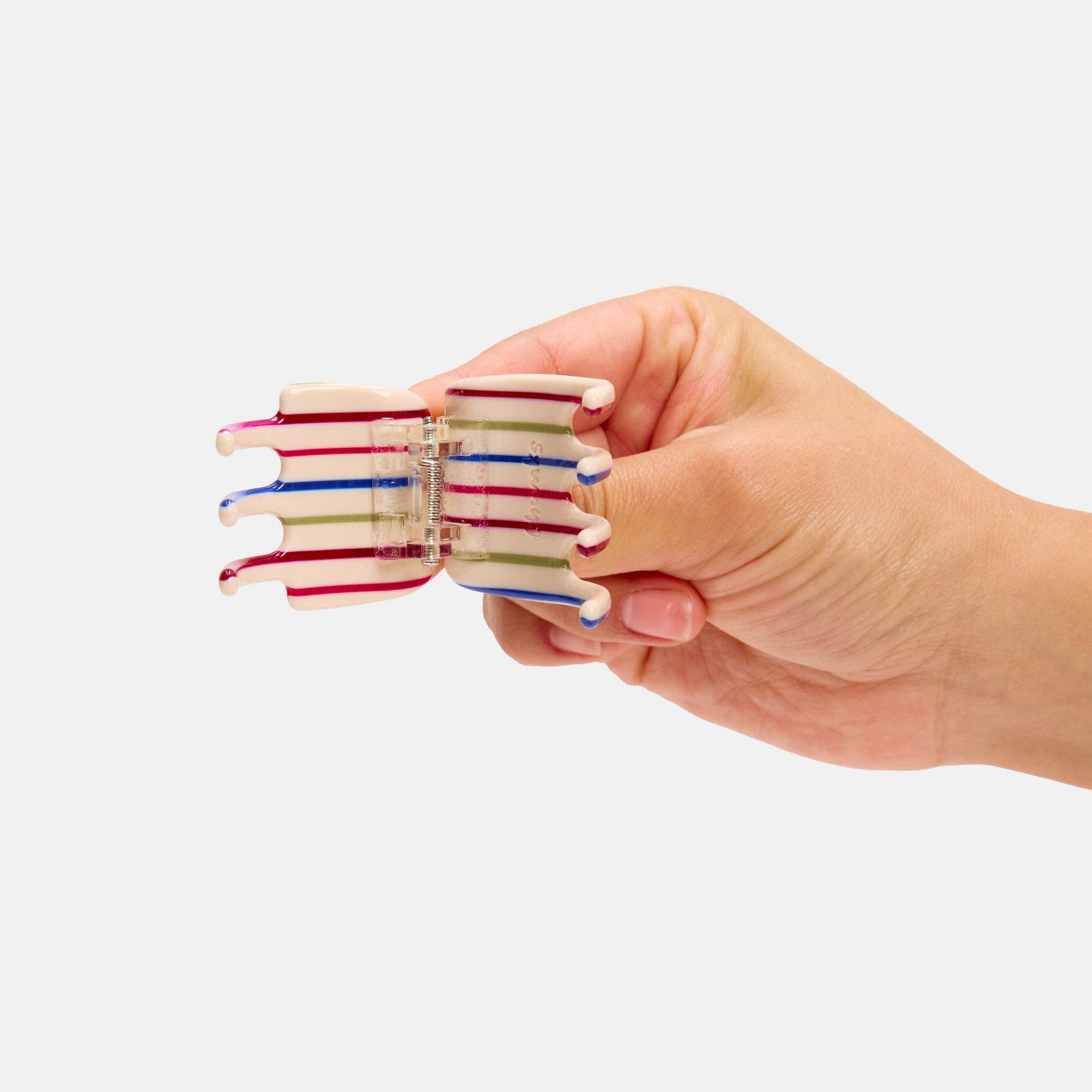 This medium sized claw is uniquely perfect for curly, textured, medium to thick hair. Large teeth give a gentle but firm hold, without crushing curls.